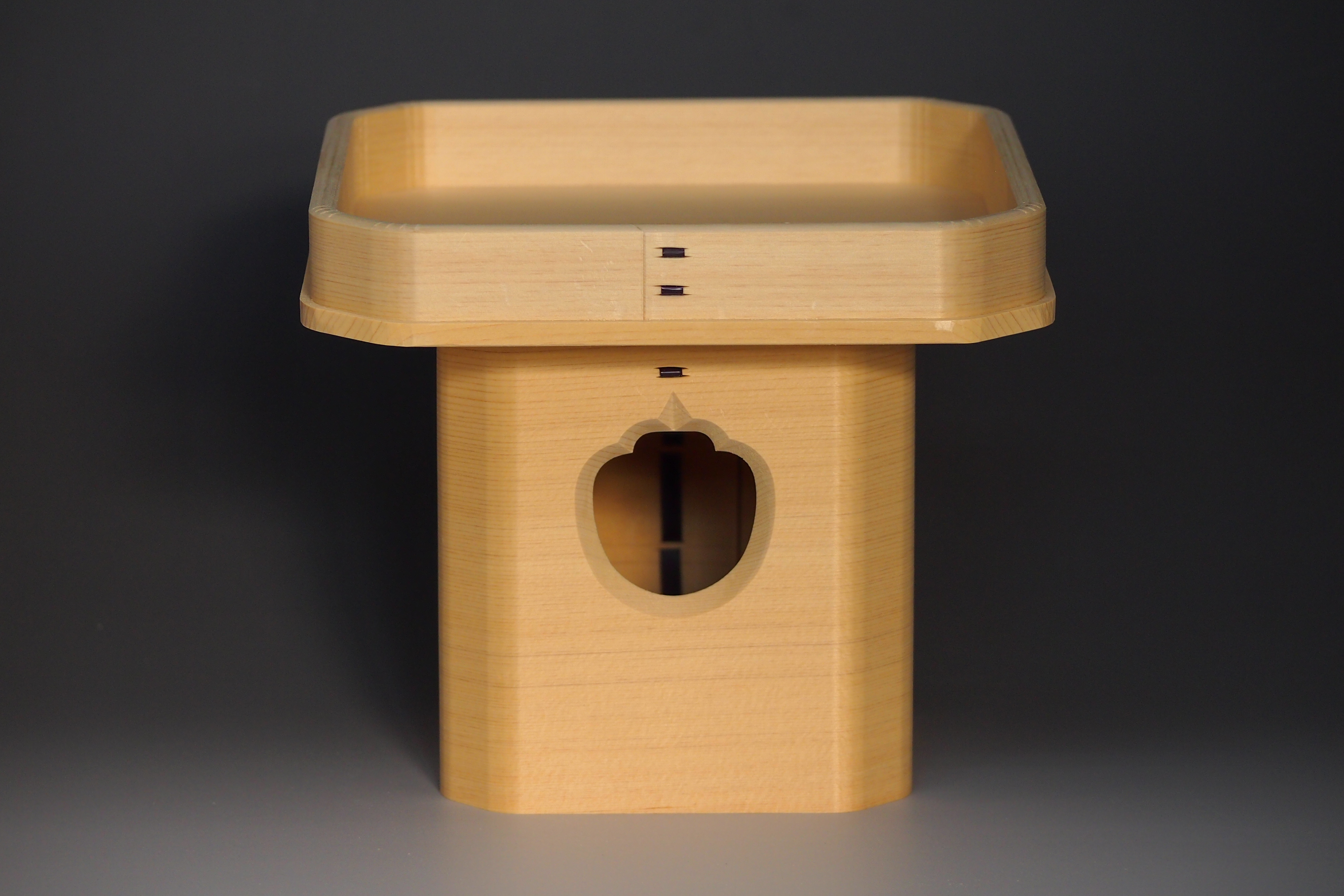 神ノ木である木曽檜で作りました。本職用です。 狂いの少ない本柾(糸柾)の板を使用しています。